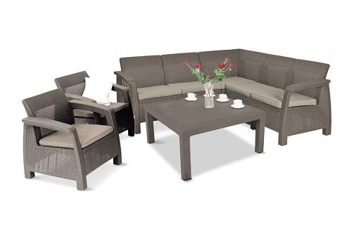 Korfu bútorok széles választéka kombinálható egymással. A Corfu sorozat összes bútora egységes színnel és kialakítással rendelkezik, így két fotelt dohányzóasztallal (Corfu Weekend), kétüléses kanapét (Corfu Love Seat) vagy más elemeket tartalmazhatunk. Az európai gyárak nagy jelentőséget tulajdonítanak a bútorok befejezésének minőségének és egységes színének. A bútoroknak működőképesnek kell lenniük-a párnák hiánya gyengíti az ülést.