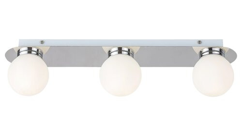 A modern formatervezésű, króm és fehér színkombinációban készült Becca hármas fürdőszobai mennyezeti lámpát azoknak ajánljuk, akik a gömbölyded formákat részesítik előnyben. A fürdőszobai lámpát felszerelhetjük a mosdó, illetve a tükör fölé, vagy bárhová a fürdőszoba mennyezetére. A lámpa három darab, egyenként legfeljebb 28 W teljesítményű, energiatakarékos fényforrással használható, a foglalatok típusa G9. Amennyiben modern hatást szeretnénk elérni, válasszunk hozzá természetes fehér fényű fényforrást. A fémből és üvegből készült modell IP44-es védettséggel rendelkezik, ami garantálja, hogy legfeljebb 1 mm átmérőjű tárgyak behatolása ellen, valamint bármilyen irányból fröccsenő víz ellen védett. A hármas mennyezeti lámpa teljes szélessége 450 mm. A Becca fürdőszobai lámpát fényforrás nélkül szállítjuk.