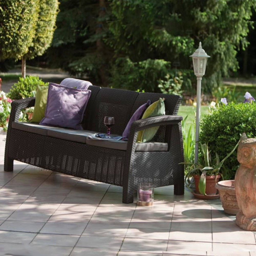 A Corfu Love Seat Max kerti kanapé tökéletesen kiegészít más Korfu készleteket . Mivel a gyártó gondoskodott a Corfu sorozat egyedi bútorainak egységes kialakításáról és színéről, biztosak lehetünk benne, hogy a kanapé megegyezik a többi színű készlettel.