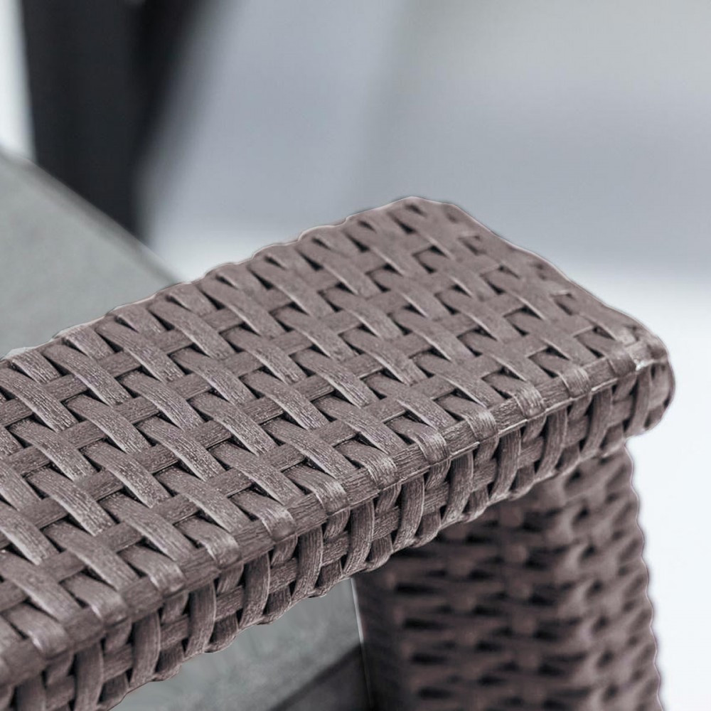 A praktikus műanyag kerti bútorkészlet a Corfu Relax Quartet grafit több bútor kombinációja. Két fotel és egy tágas sarok szépen körvonalazott háttámlákkal és kényelmes karfákkal rendelkezik. A szett tartalmaz egy praktikus dohányzóasztalt ahol a szabadban vacsorázhat a családjával. A sarokülő és a fotelek kényelmes párnákkal vannak ellátva, párnahuzatokkal, amelyek cipzárral rendelkeznek, így a párnahuzatok könnyen moshatók a mosógépben. Ezenkívül a bemutatott, szögletes asztallal ellátott kerti szett gyakorlati jellemzője, hogy a kartámaszok olyan magasságban vannak, hogy lehetővé teszik a fotelek behelyezését az asztal alá, ennek köszönhetően helyet takaríthatunk meg.