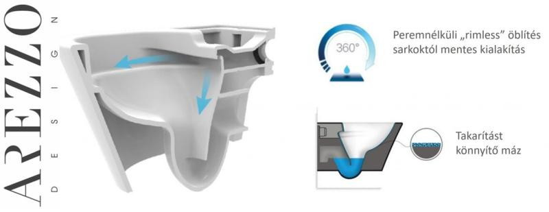 AREZZO design VERMONT álló rimless wc alsó/hátsó kifolyású
