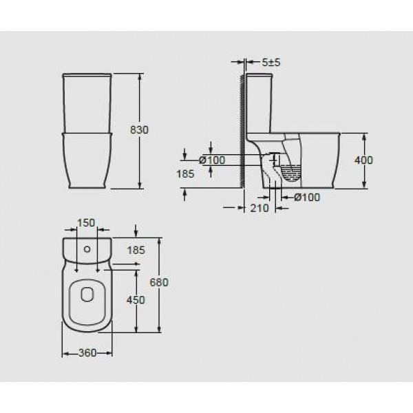AREZZO design CHARLTON combi toilet with lower/rear AR-402 (2 boxes)
