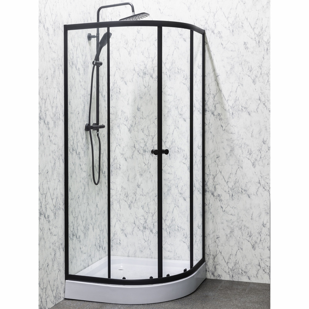 4 mm-es edzett üvegfalakkal rendelkezik. A zuhanykabin profiljai fekete alumínium.