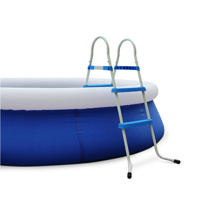 A fehér és kék színű kialakítás szép és elegáns megjelenést kölcsönöz a medencének. Az ilyen típusú létra általában nagyobb medencékhez alkalmas, de megfelelő lehet a kisebb medencékhez is.
