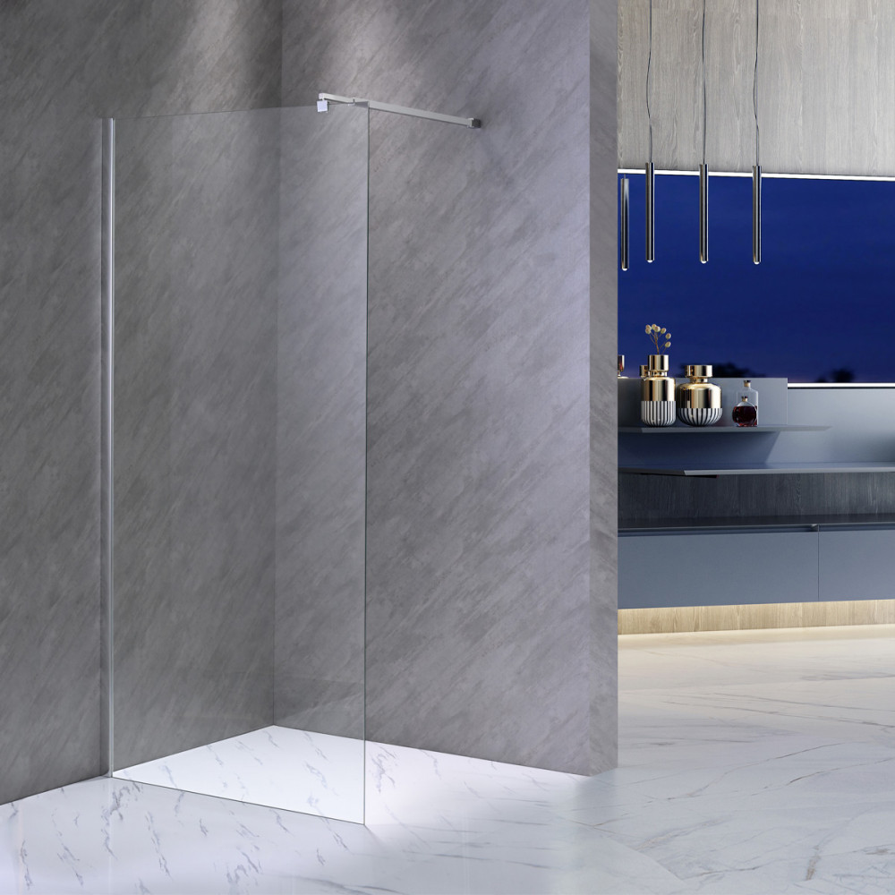 A krómozott alumínium profil elegáns megjelenést biztosít, amely jól illeszkedik mind a modern, mind a klasszikus stílusú enteriőrbe. A zuhanyfal zuhanytálca nélkül is használható, közvetlenül a padlóra telepítve, ami ideális megoldás a walk-in, síkba épített zuhanyzók kedvelőinek.