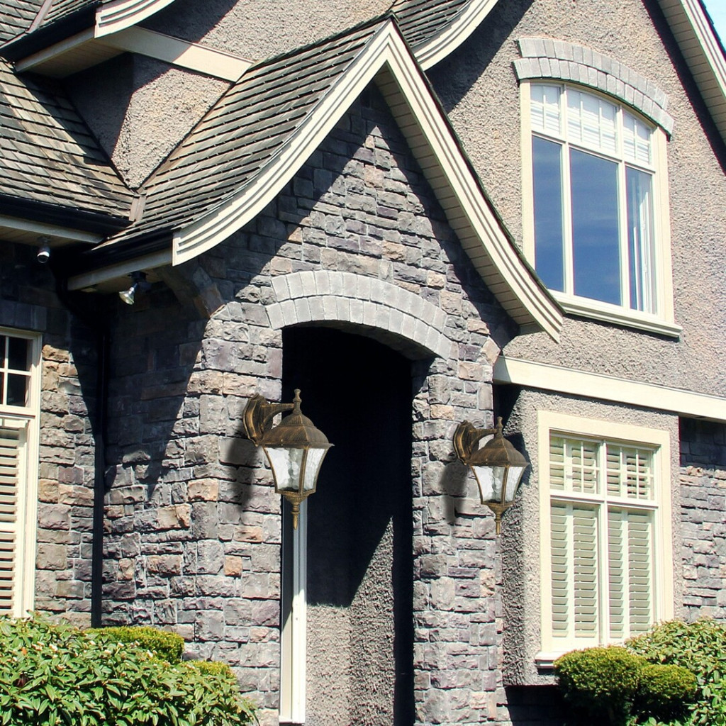 Klasszikus megjelenésű kültéri fali lámpa 1 db foglalattal, lefelé irányított búrával kivitelben. 37 cm magas, 20 cm a faltól mért távolsága, antik arany színű fém lámpatest és katedrál üveges lámpabúra, IP43-as védettséggel. A lámpatest E27-es foglalatú, max. 60W teljesítményű fényforrással használható.
